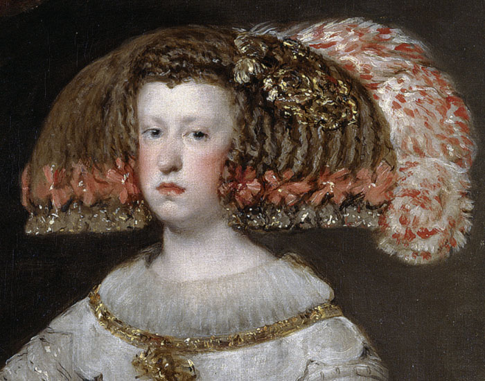 Velázquez ha fallecido en 1660, el último retrato conservado del rey corresponde al año 1656; le vemos prematuramente envejecido debido a los excesos y a los sinsabores del poder. La pervivencia de la ley sálica por la cual las mujeres no podían reinar supuso para Felipe IV un tremendo varapalo. Casado en primeras nupcias con Isabel de Borbón tuvo ocho hijos pero casi todos se malograron. Por este motivo junto con la desgraciada y prematura muerte de su heredero el príncipe Baltasar Carlos, el monarca que había enviudado en 1644, se vio obligado a contraer matrimonio por segunda vez. En la localidad madrileña de Navalcarnero en 1649 se desposó con su sobrina carnal Mariana de Austria, de quince años de edad frente a los cuarenta y cuatro que tenía el monarca.