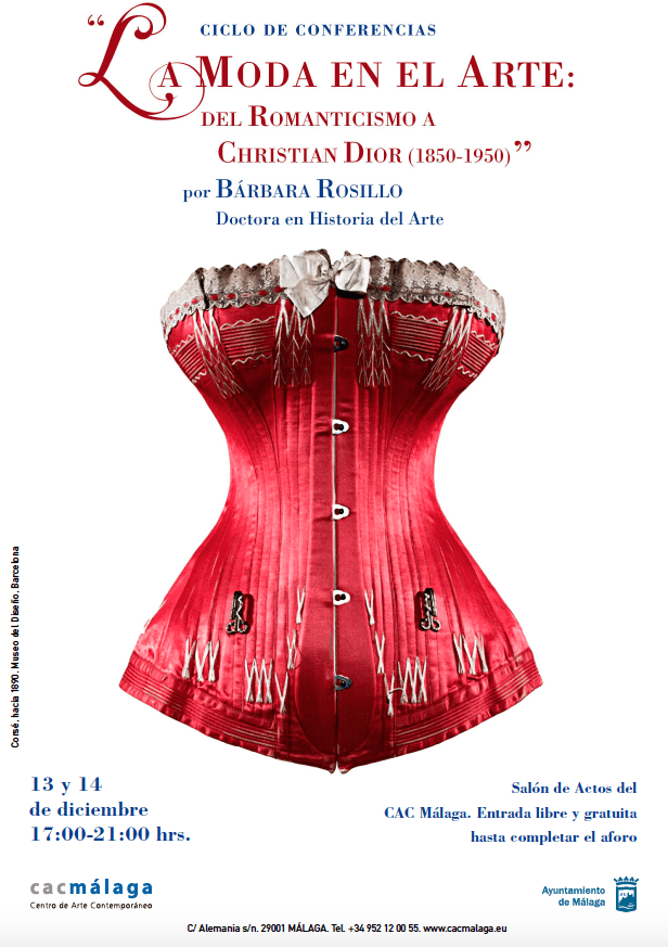 El CAC Málaga acoge el ciclo de conferencias “La Moda en el Arte: del Romanticismo a Christian Dior (1850 -1950)” por la doctora en Historia del Arte, Bárbara Rosillo que tendrá lugar el jueves 13 y viernes 14 de diciembre en horario de 17:00 a 21:00 horas en el salón de actos del centro. Entrada libre y gratuita hasta completar aforo. Previa inscripción.