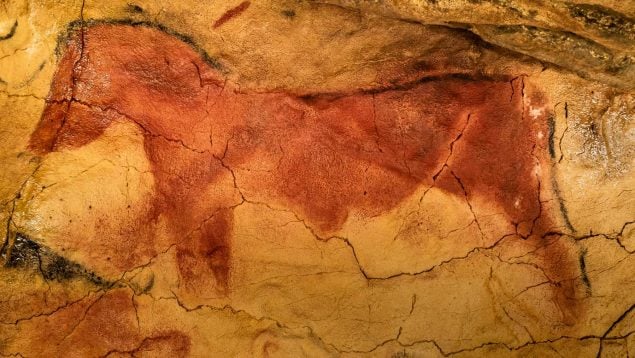 (…) Siguiendo el examen de la primera galería, y precisamente desde donde concluye el depósito de huesos y cáscaras, se encuentra el observador sorprendido al contemplar en la bóveda de la cueva un gran número de animales pintados, al parecer, con ocre negro y rojo, y de tamaño grande, representando en su mayoría animales que, por su corcova, tienen alguna semejanza con el bisonte, de los cuales dos están de costado y completos, otros carecen de cabeza, algunos están en posturas incomprensibles, y de otros solo quedan algunos trazos, habiendo desaparecido, en más o en menos, los colores que sirvieron para pintarlos.