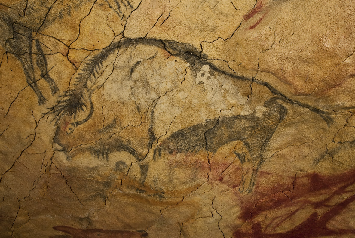 (…) Siguiendo el examen de la primera galería, y precisamente desde donde concluye el depósito de huesos y cáscaras, se encuentra el observador sorprendido al contemplar en la bóveda de la cueva un gran número de animales pintados, al parecer, con ocre negro y rojo, y de tamaño grande, representando en su mayoría animales que, por su corcova, tienen alguna semejanza con el bisonte, de los cuales dos están de costado y completos, otros carecen de cabeza, algunos están en posturas incomprensibles, y de otros solo quedan algunos trazos, habiendo desaparecido, en más o en menos, los colores que sirvieron para pintarlos.