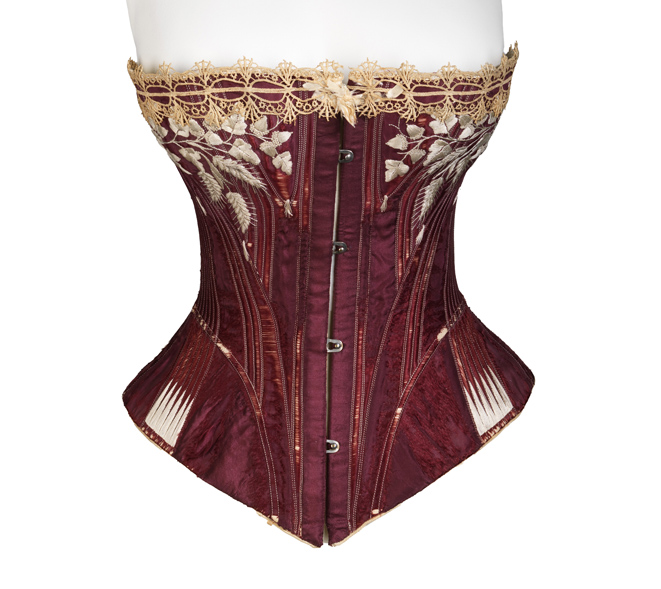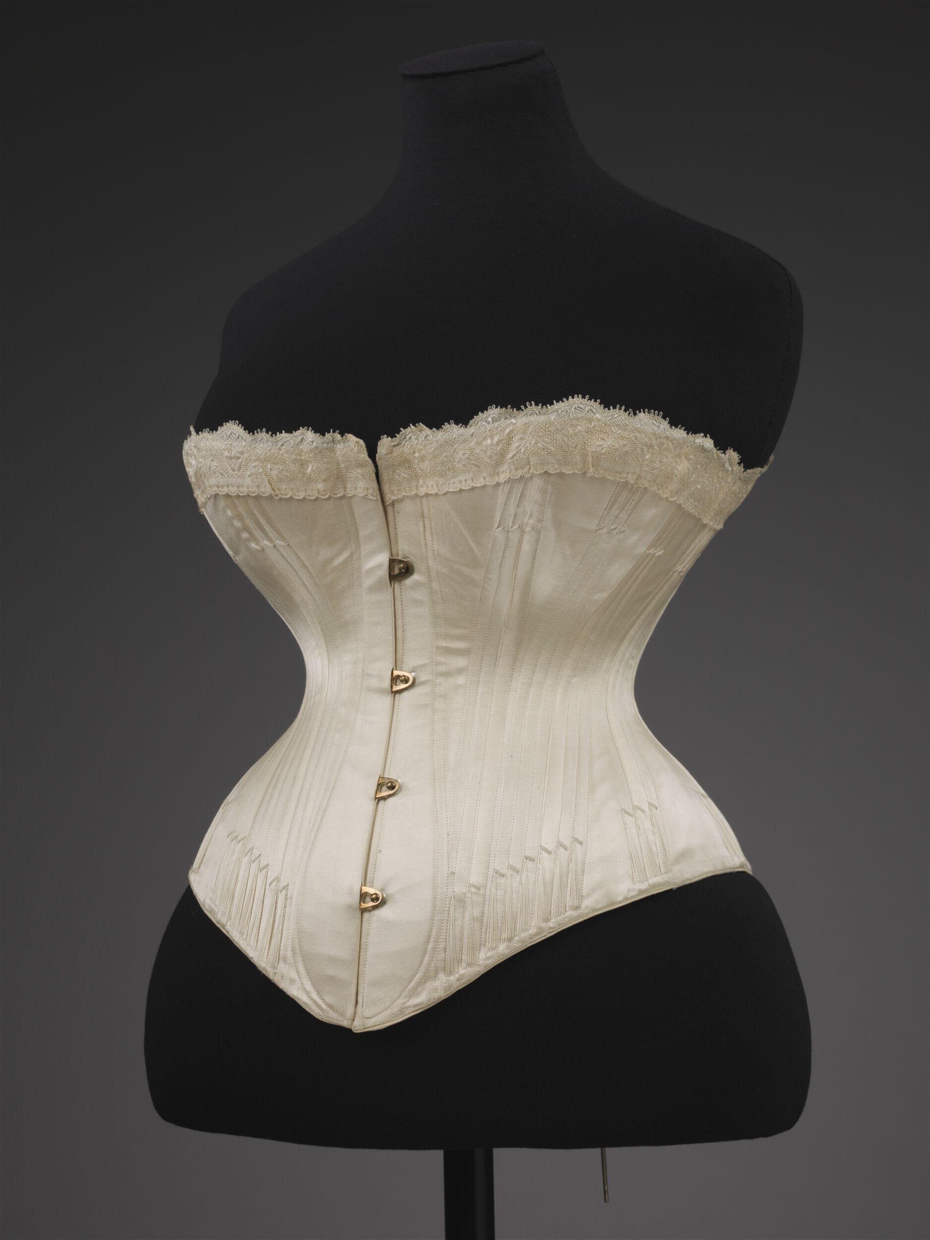 “Antes de meterse el corsé, deberá una señora apartar los pliegues de la camisa, a fin de que no incomoden después de abrochado aquel. Colocará los hombrillos sobre el borde de los hombros, y si el corsé ha servido ya, los destorcerá en el punto en que se juntan con la parte delantera: lo tirará hacia abajo por las nesgas del vientre a fin de que haga buen cuerpo, y empujará el hierro o madera hacia abajo para que no apriete demasiado la garganta. Todos estos movimientos deberá ejecutarlos en tanto que se la encordonará el corsé. Esto se practicará del modo siguiente. El cordón deberá siempre estar asegurado a la derecha abajo. Se empezará por esta parte no apretando hasta que el cordón esté pasado, debiendo por consiguiente tener este unas tres varas y media de largo. Cuando se habrá pasado en todos los ojetes, se ajustará el corsé flojo por abajo y por arriba, cerrando bien en medio: esto se hace a fin de presentar la cintura más delgada; pero a mi ver, es lo primero el no andar demasiado apretada, mayormente cuando la moda de ajustar demasiado el corsé por en medio es una de las cosas que más dañan al estómago; con todo es siempre ventajoso el que el corsé esté más flojo en las partes superior e inferior.