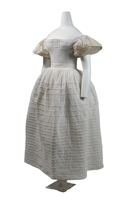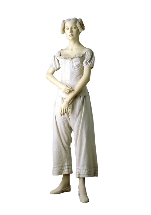 Se tirará en seguida la camisa, no en el medio sino derecha e izquierda de la parte inferior del corsé hacia las mangas, a fin de que nada parezca encima de su borde. Se vestirá en seguida el jubón, sobre lo cual solo tengo que observar que conviene tener mucho cuidado en colocar sobre los hombrillos del corsé la cinta de hilo que sirve de elástico para las enaguas, porque si se cae sobre los brazos ocasiona un dolor insufrible. Si el vestido es de ropa clara o trasparente deberá llevarse camisolín: este es un cuerpo de vestido escotado de batista o percala fina con mangas cortas: se le sujeta por detrás, y el lujo en esa pieza llega términos que se le borda al rededor con hermosos dibujos adornados con punto de encaje, y guarneciendo cada diente con blondas de Malinas o Valenciennes. La manga tiene un puño bordado; pero dejando à un lado estos adornos excesivos que pueden reemplazarse con facilidad por medio de un poco de tul de algodón, los camisolines son muy útiles para esconder la orilla de la camisa, el borde del corsé y la parte superior de los pechos, y ahorran la guarnición que antiguamente se ponía en los cuellos de las camisas. A propósito aconsejo muy particularmente el tener alrededor del cuello de la camisa una vaina con un cordón pasado, porque de otro modo no sería fácil el hacerse encordonar sin indecencia.